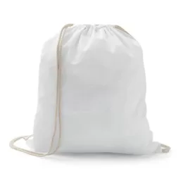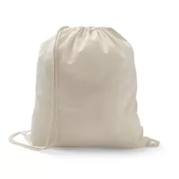 Sacola tipo mochila em algodão reciclado e poliéster (140 g/m²). 370 x 410 mm