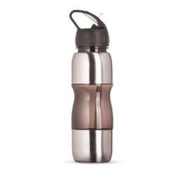 Squeeze Alumínio 600ml 2048 com alça plástica e bico de canudo. Possui detalhes plástico coloridos, tampa rosqueável com bico e canudo interno.
