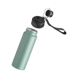Descrição: Squeeze Alumínio 800ml, possui tampa rosqueável com proteção para bocal plástica e alças de nylon e plástica.