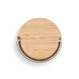 Squeeze em bambu e aço inox, com corpo duplo e isolamento a vácuo. Capacidade até 440 ml. Food grade. Fornecido em caixa presente de papel craft. ø70 x 215 mm