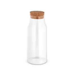 Squeeze em vidro borosilicato com tampa de cortiça. Capacidade até 800 ml. Food grade. Fornecido em caixa presente de papel craft. ø80 x 190mm