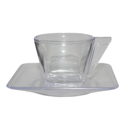 Capacidade 50 ml. Conjunto Xicara com Pires Cristal, fabricada em Plástico Premium (PS) de alta resistência (não é vidro), com parede de 2mm de espessura garante um produto robusto de alta qualidade e transparência. Material atóxico e acabamento impecavél, ideal para escritórios e eventos corporativos.